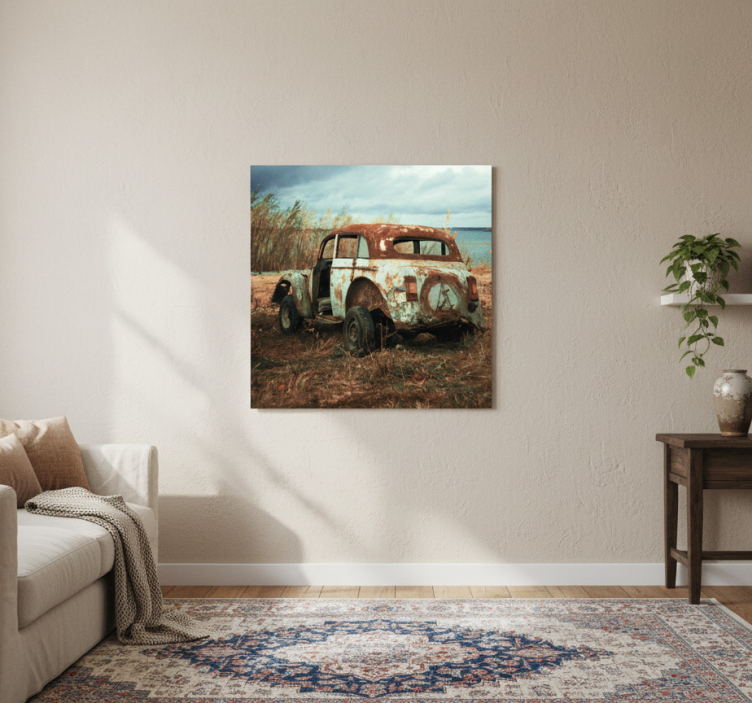 Das Poster Wohnzimmer poster wohnzimmer altes schmutziges auto im feld ist nicht nur ein einfacher Wandschmuck, sondern ein echtes Statement für jeden Raum. Die Kombination aus nostalgischem Charme und rustikaler Eleganz bringt eine warme Atmosphäre in Ihr Zuhause. Ob im Wohnzimmer, Arbeitszimmer oder Flur, dieses Poster wird Ihre Wände in einen Blickfang verwandeln! Lassen Sie sich von der Faszination des alten Autos und der Weite des Feldes inspirieren und verleihen Sie Ihrem Raum eine persönliche Note.