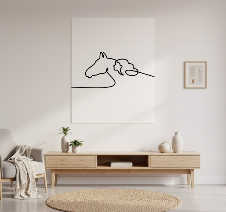 Ein Poster Wohnzimmer Frau mit Pferden Linienstil Illustration ist die perfekte Wahl für alle, die ihrem Wohnraum eine stilvolle und inspirierende Note verleihen möchten. Dieses Kunstwerk strahlt Ruhe und Eleganz aus und passt hervorragend in verschiedene Einrichtungsstile. Ob im Wohnzimmer, im Büro oder in einem kreativen Raum – dieses Poster zieht die Blicke auf sich und sorgt für eine ansprechende Atmosphäre, die zum Verweilen einlädt!