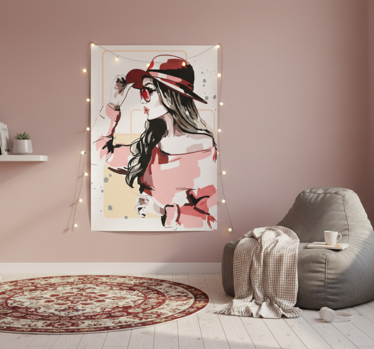 Poster wohnzimmer frauen mit hut