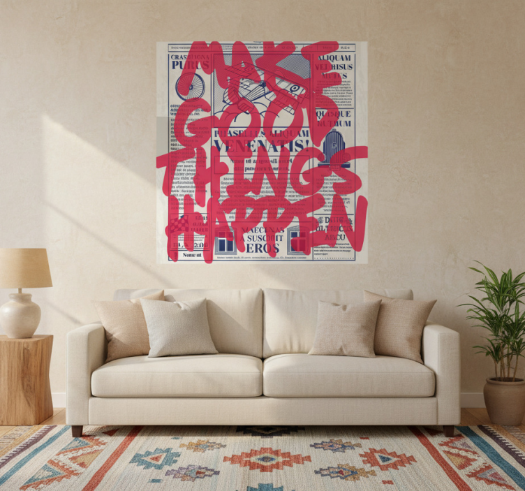 Das Poster Wohnzimmer gute Dinge geschehen retro design ist die perfekte Wahl, um einem Raum Charakter zu verleihen! Es inspiriert nicht nur Ihre Gäste, sondern bringt auch positive Vibes in jeden Winkel Ihres Wohnzimmers. Die Kombination aus modernem Retro-Design und ansprechenden Farben schafft eine einladende Atmosphäre, die zum Verweilen einlädt und Ihre Kreativität anregt. Lassen Sie sich von diesem Poster begeistern und machen Sie Ihr Zuhause zu einem Ort, an dem gute Dinge geschehen!