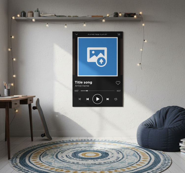 Das Poster Wohnzimmer im Spotify Canvas Stil ist mehr als nur ein Dekorationsstück; es ist ein Ausdruck Ihrer Persönlichkeit! Durch sein modernes Design verleiht es jedem Raum eine kreative Note und zieht die Blicke auf sich. Es ist perfekt geeignet, um eine angenehme Atmosphäre zu schaffen und zum Verweilen einzuladen. Nutzen Sie die Möglichkeit, Ihrem Wohnzimmer einen Hauch von Stil und Eleganz zu verleihen!