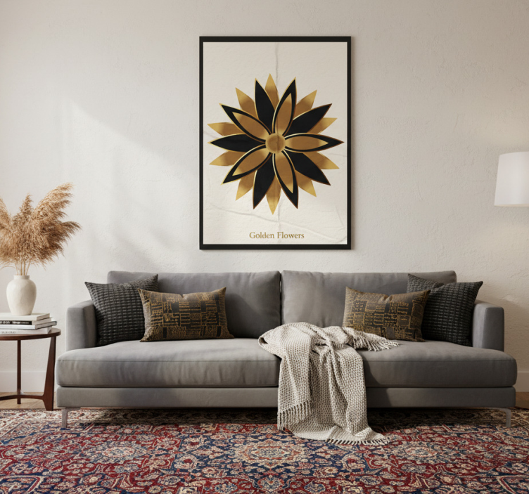 Poster wohnzimmer mit goldenen blumen