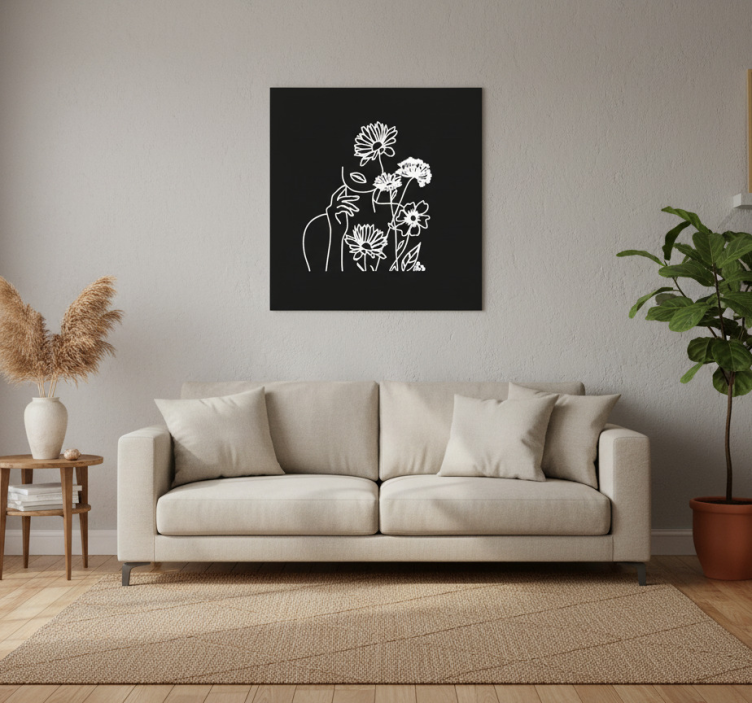 Poster wohnzimmer mit minimalistischem frauenblumenmotiv