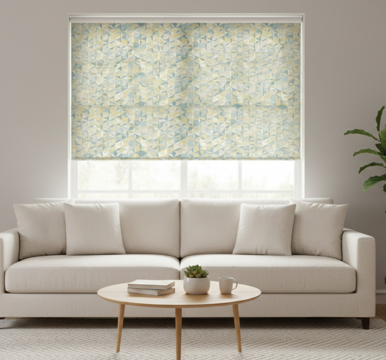 Referenz: E7844Entdecken Sie das stilvolle Fenster Rollo Modern in einem faszinierenden geometrischen Design, das in den Farben beige, blau und gelb erstrahlt. Dieses Rollo vereint Funktionalität mit einem kreativen Look, der jeden Raum aufwertet. Die harmonische Kombination der Farben und das moderne Muster verleihen Ihrem Zuhause eine frische Note. Darüber hinaus überzeugt es durch die einfache Montage mit nur 2 Klicks, was es zu einer praktischen Wahl für jeden Raum macht. Zudem schützt es den Raum vor direkter Sonneneinstrahlung und bietet Ihnen die Möglichkeit, die Raumtemperatur zu regulieren.
