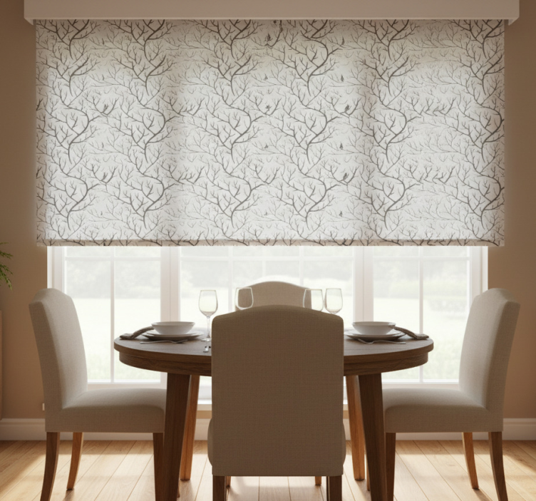 Rollo esszimmer dünne graue Äste mit vögeln