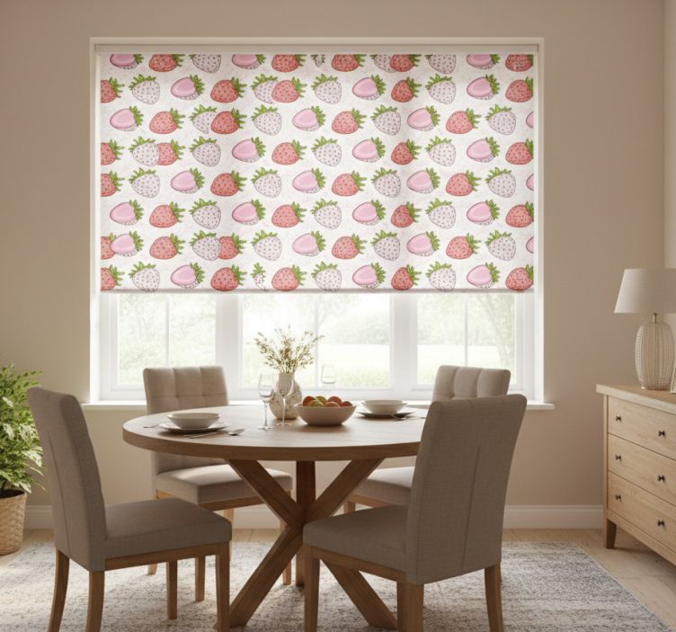Rollo esszimmer mit nahtlosen rosa und roten erdbeeren