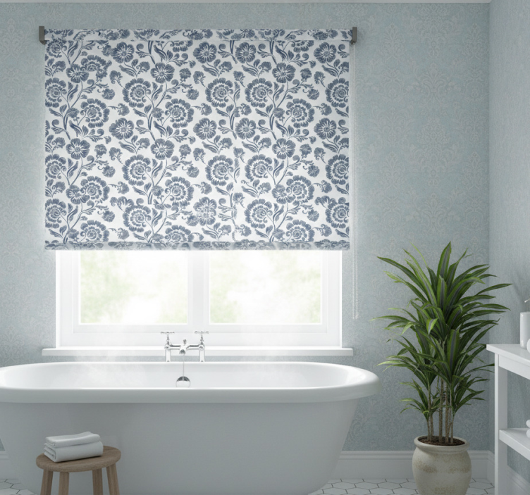Rollo fenster badezimmer blaue blumen weißer hintergrund
