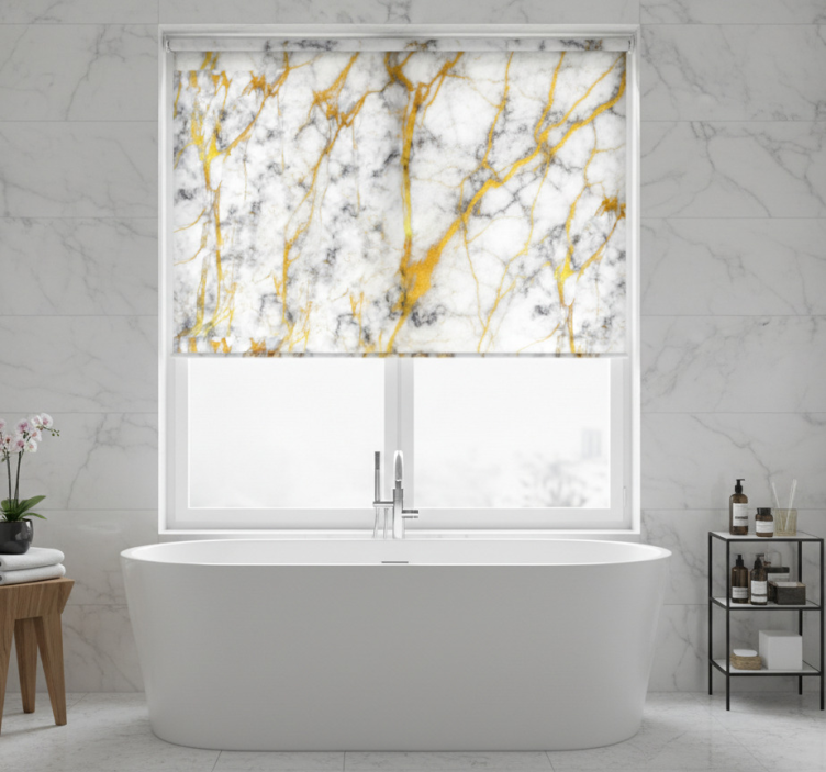 Rollo fenster badezimmer eleganter grauer und goldener marmor