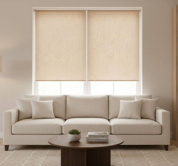 Rollo fenster beige mit breiten beigen streifen