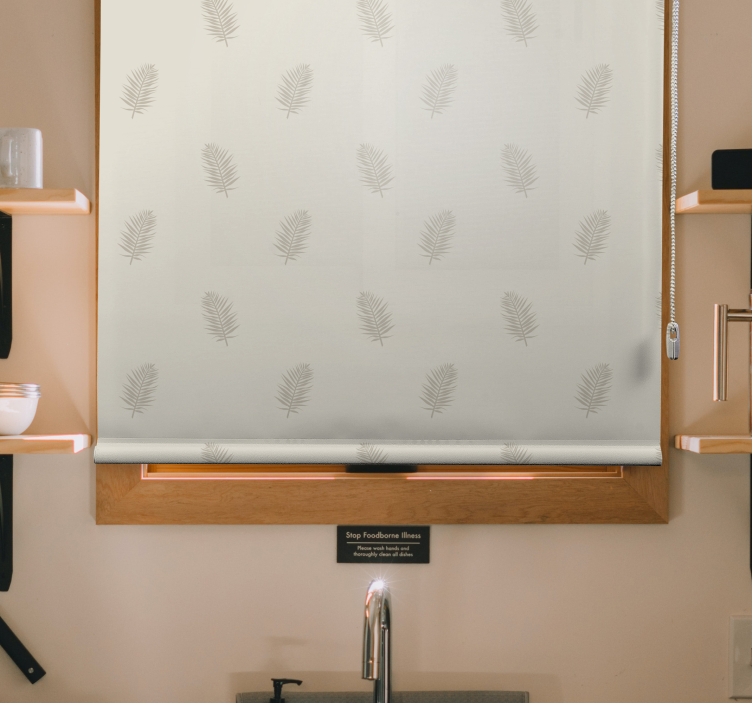 Entdecken Sie das Rollo Fenster Blumen und Pflanzen beiges blattmuster, das mit seinem stilvollen Design und dem bezaubernden Blattmuster eine harmonische Verbindung zur Natur schafft. Die sanften, beigen Töne und die ansprechenden Blätter verleihen jedem Raum eine nordische Eleganz und schaffen eine entspannende Atmosphäre, die Ihre Sinne erfreut.