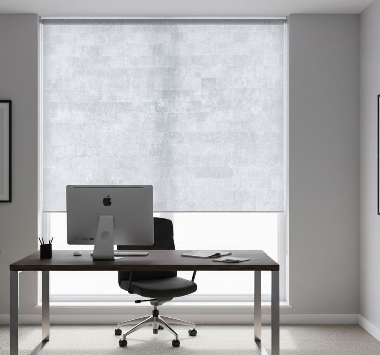 Rollo fenster home office grau ziegelmuster vintage