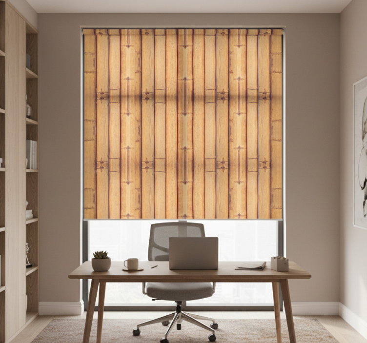 Rollo fenster home office mit bambus holzoptik