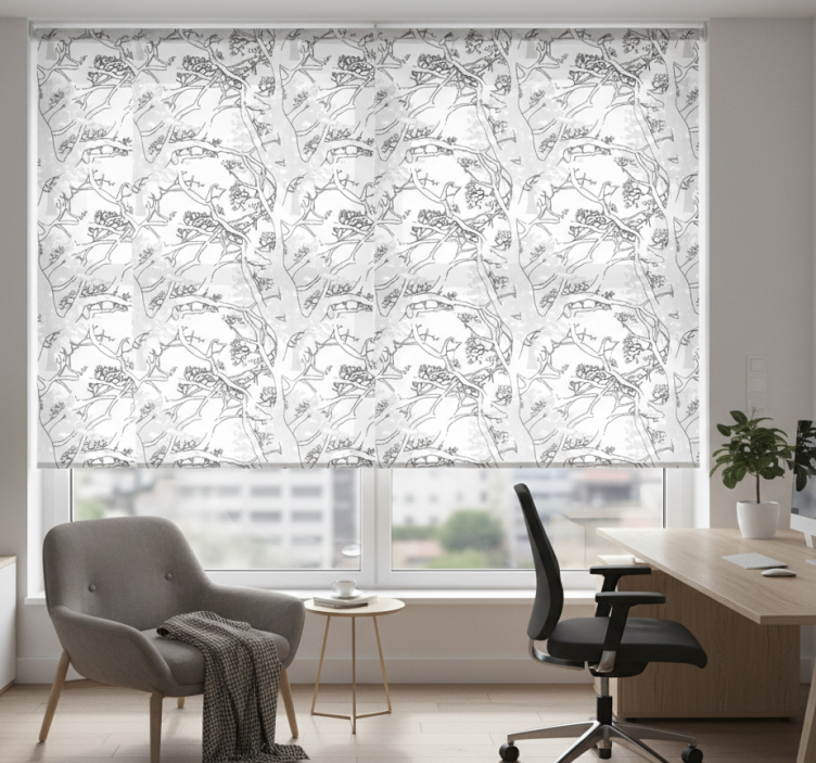 Das Rollo Fenster Home Office mit dunklen Baumzweigen ist nicht nur ein Blickfang, sondern auch eine funktionale Ergänzung für Ihr Zuhause. Die harmonische Verbindung von Natur und modernem Design fördert Ihre Kreativität und Produktivität. Außerdem schützt dieses Rollo Ihr Zuhause vor direkter Sonneneinstrahlung und bietet Ihnen die Privatsphäre, die Sie während Ihrer Arbeit benötigen. Verleihen Sie Ihrem Raum einen Hauch von Eleganz und Komfort!