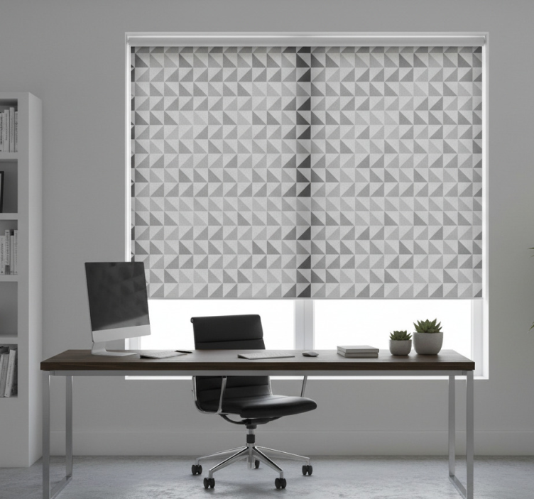 Rollo fenster home office mit geometrischen dreiecken