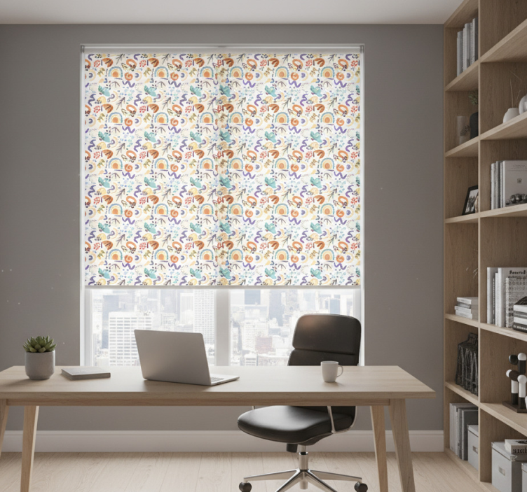 Das Rollo Fenster Home Office mit organischem Muster ist nicht nur ein schöner Anblick, sondern bietet auch zahlreiche Vorteile für Ihr Zuhause. Es schützt vor direkter Sonneneinstrahlung und sorgt gleichzeitig für Privatsphäre, wenn Sie es absenken. Darüber hinaus hilft es, die Raumtemperatur zu regulieren und schafft eine angenehme Atmosphäre, die Sie zum Arbeiten inspiriert! Die Möglichkeit, aus drei verschiedenen Texturen zu wählen, ermöglicht es Ihnen, das perfekte Lichtverhältnis und die gewünschte Privatsphäre zu erreichen. Verwandeln Sie Ihr Home Office in einen Ort des Wohlbefindens!