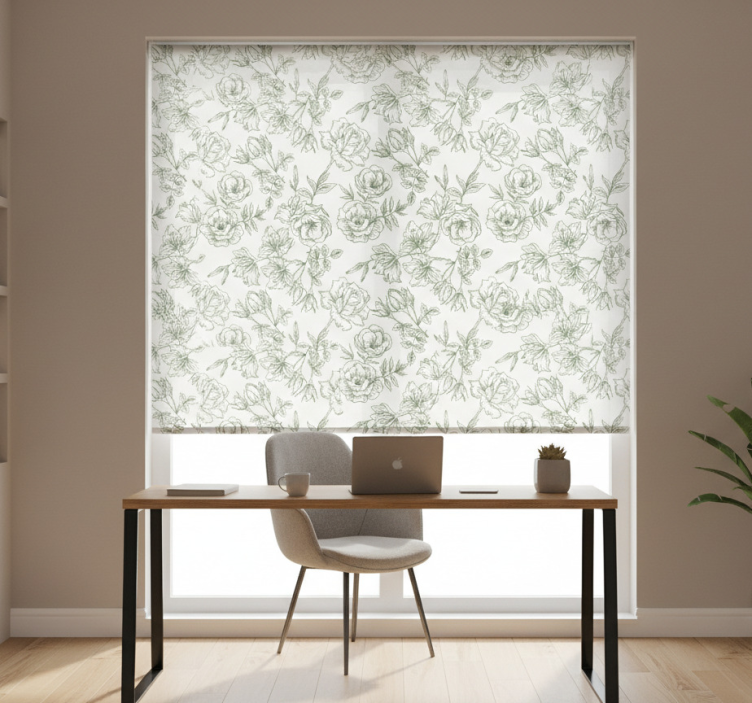 Rollo fenster home office weiße rosen
