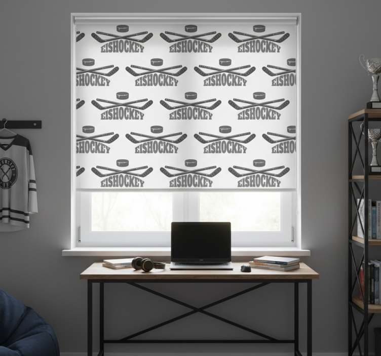 Referenz: E7556Das Rollo Fenster Jugendzimmer Eishockey Motiv begeistert mit einem einzigartigen Design, das die Leidenschaft für Eishockey in jeden Raum bringt. Die dynamischen Grafiken zeigen spannende Spielszenen und Spieler in Aktion, die das Jugendzimmer in ein sportliches Highlight verwandeln. Die Kombination aus lebendigen Farben und detailgetreuen Motiven sorgt für eine energiegeladene Atmosphäre, die jedem jungen Sportfan ein Lächeln ins Gesicht zaubert. Mit der einfachen Montage ist das Rollo im Handumdrehen angebracht und verleiht dem Raum das besondere Etwas.
