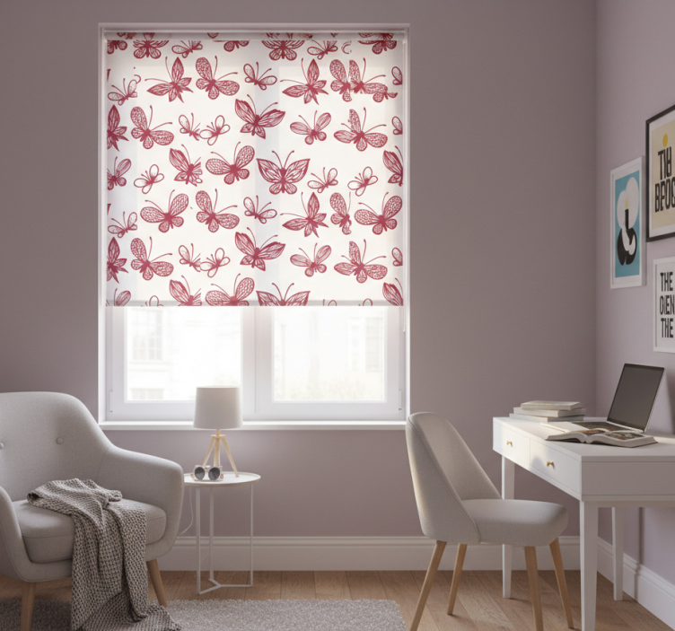 Rollo fenster jugendzimmer elegantes rotes schmetterlingsmuster