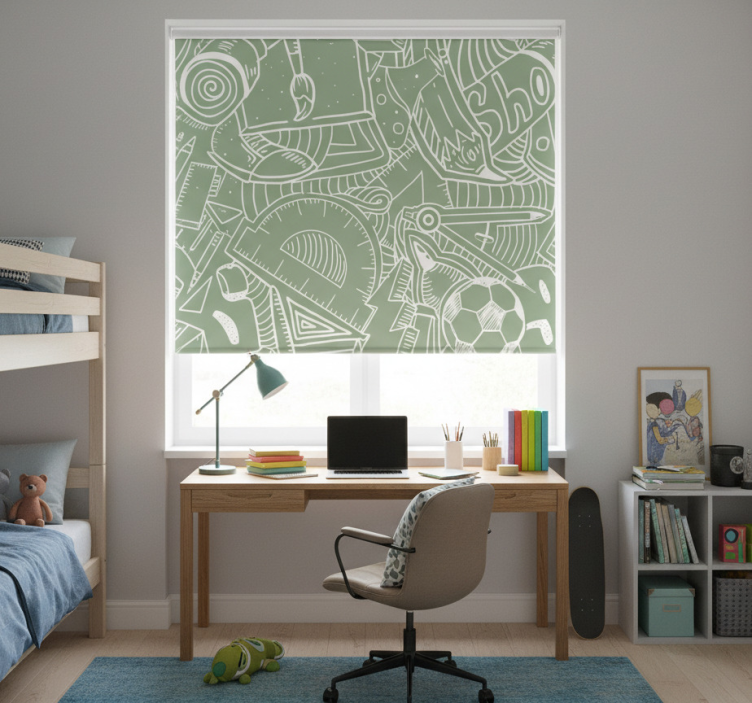 Rollo fenster jugendzimmer grüne schultafel kreide