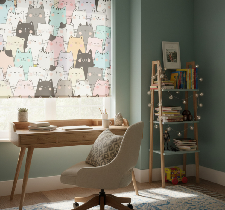Rollo fenster jugendzimmer katzenmotiv