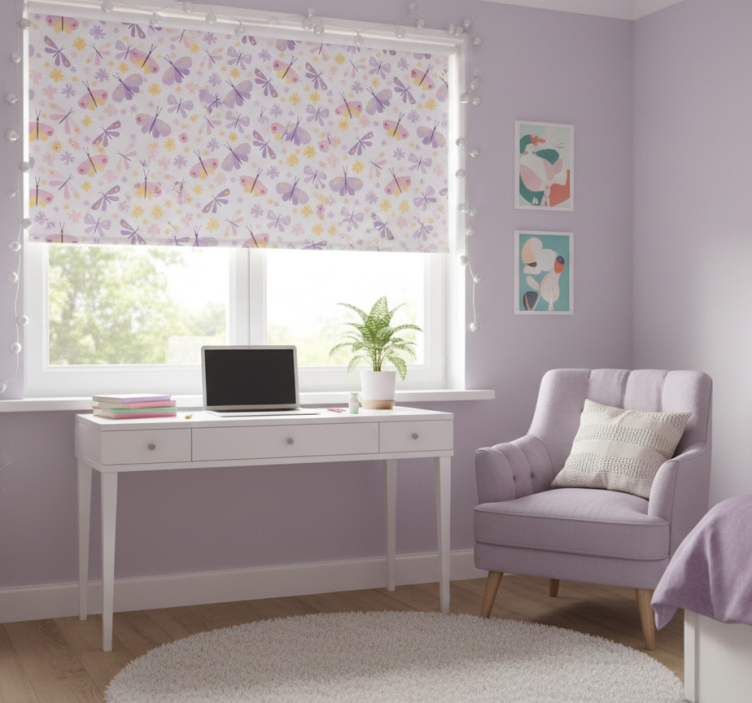 Rollo fenster jugendzimmer lila schmetterlingsmuster