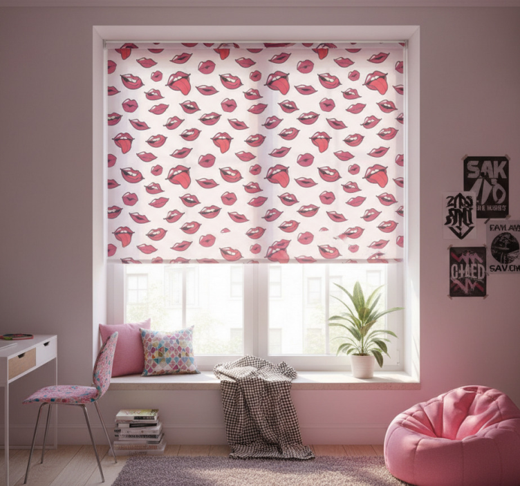 Rollo fenster jugendzimmer mit abstrakten lippen und zunge