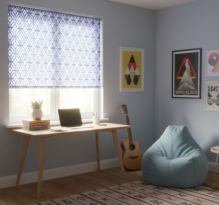 Rollo fenster jugendzimmer mit blauem linienmuster