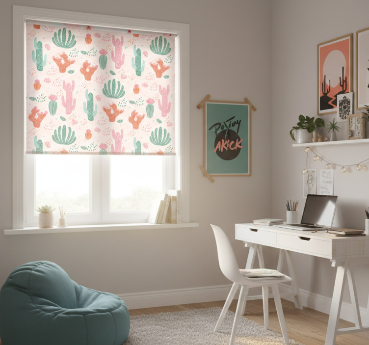 Rollo fenster jugendzimmer mit buntem kaktusmuster