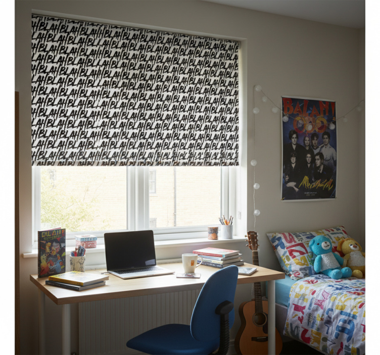 Rollo fenster jugendzimmer mit buntem mustermotiv