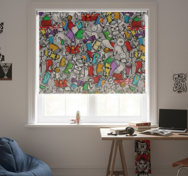 Rollo fenster jugendzimmer mit bunten graffiti-dosen