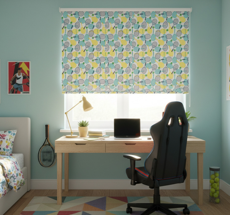 Das Rollo Fenster Jugendzimmer mit bunten Schläger-Mustern ist mehr als nur ein Fensterbehang; es ist ein Statement! Dieses Rollo bringt Farbe und Begeisterung in den Raum und fördert eine positive Atmosphäre. Es schützt nicht nur vor direkter Sonneneinstrahlung, sondern bietet auch Privatsphäre und trägt zur Regulierung der Raumtemperatur bei. Mit einer einfachen Montage und dem anpassbaren Design können Sie den Look Ihres Zimmers nach Ihren Wünschen gestalten. Verleihen Sie Ihrem Raum das gewisse Etwas und genießen Sie gleichzeitig die praktischen Vorteile!