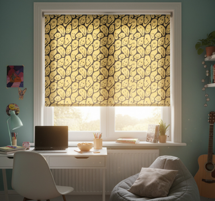 Referenz: E7538Unser Rollo Fenster Jugendzimmer mit lächelnden Gesichtern bringt ein fröhliches und lebendiges Design in jeden Raum! Mit seinem einzigartigen Muster aus lächelnden Gesichtern zaubert es sofort ein Lächeln auf die Gesichter Ihrer Kinder. Das Rollo ist nicht nur ein Blickfang, sondern bietet auch praktische Vorteile. Es schützt den Raum vor direkter Sonneneinstrahlung, sorgt für Privatsphäre im abgesenkten Zustand und ermöglicht eine einfache Regulierung der Raumtemperatur. Zudem verbessert es die Dekoration des Raumes und ist in 100 % anpassbaren Maßen erhältlich.
