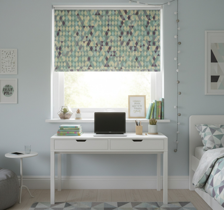 Rollo fenster jugendzimmer mit ombre geometrischen formen