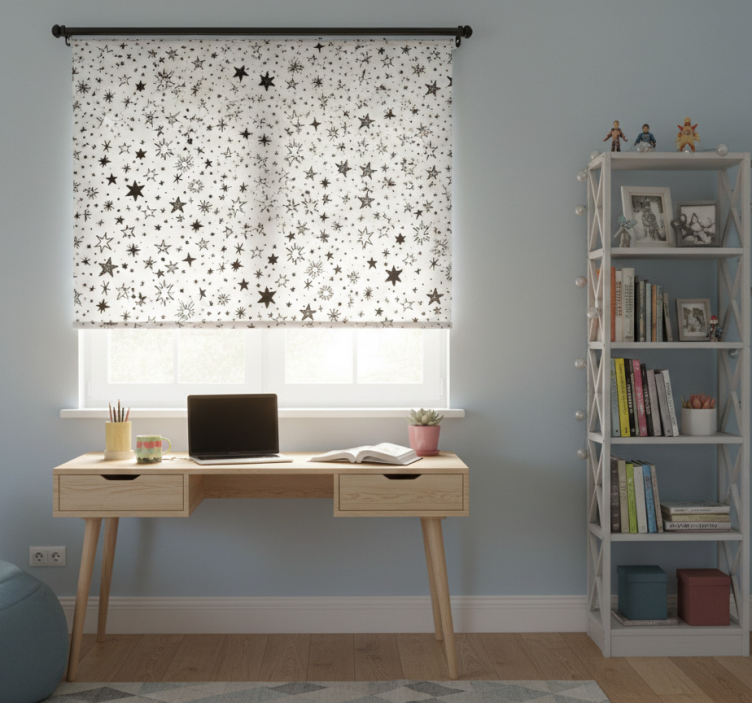 Rollo fenster jugendzimmer mit schwarzem sternenmuster