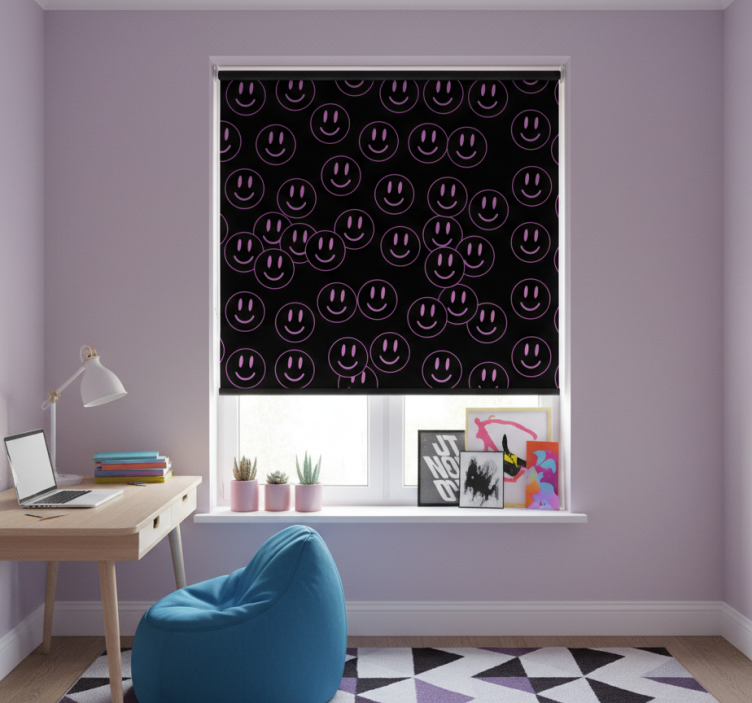 Rollo fenster jugendzimmer mit weißen und lila smileys