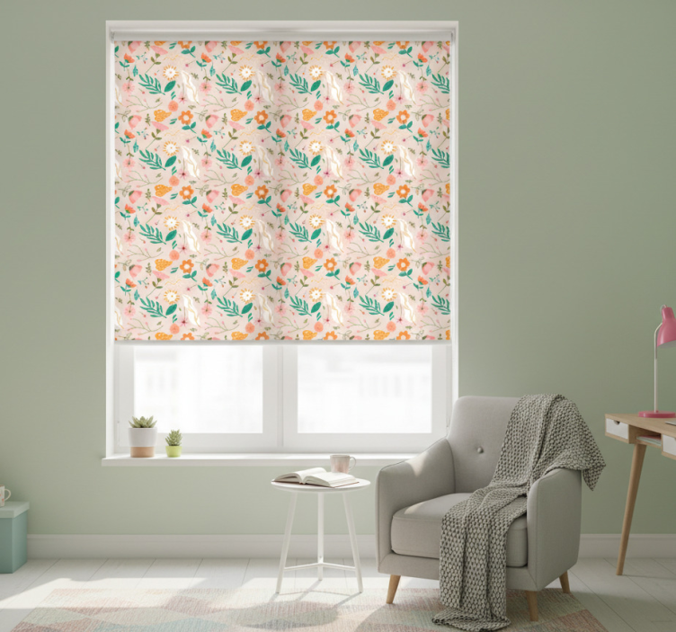 Rollo fenster jugendzimmer mit zartem blumenmuster