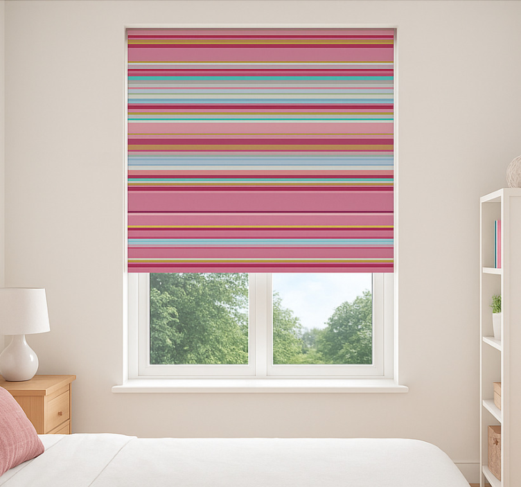 Referenz: E5856Verleihen Sie dem Jugendzimmer mit unserem Rollo Fenster Jugendzimmer rosa streifenmuster einen fröhlichen und eleganten Touch! Das zarte Rosa mit dem lebhaften Streifenmuster schafft eine einladende Atmosphäre, die perfekt für kreative Köpfe und junge Trendsetter ist. Dieses Design fügt sich harmonisch in jede Einrichtung ein und sorgt für ein Gefühl von Leichtigkeit und Frische im Raum. Die einfache Montage und Pflege machen es zur idealen Wahl für Eltern, die Wert auf Stil und Funktionalität legen.
