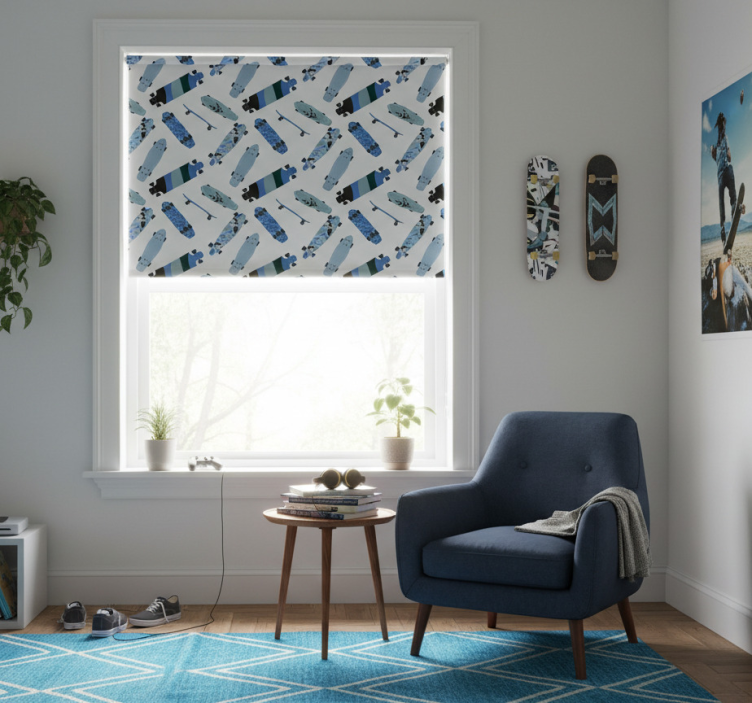 Referenz: E7562Entdecken Sie das faszinierende Rollo Fenster Jugendzimmer Skateboards Design, das mit lebendigen Farben und dynamischen Grafiken gestaltet ist. Dieses einzigartige Design bringt den aufregenden Spirit des Skateboardens in Ihr Jugendzimmer und verwandelt den Raum in einen Ort voller Energie und Kreativität. Die Kombination aus stilvollen Skateboard-Motiven und modernen Farbpaletten sorgt dafür, dass dieses Rollo nicht nur funktional ist, sondern auch als echter Blickfang dient!