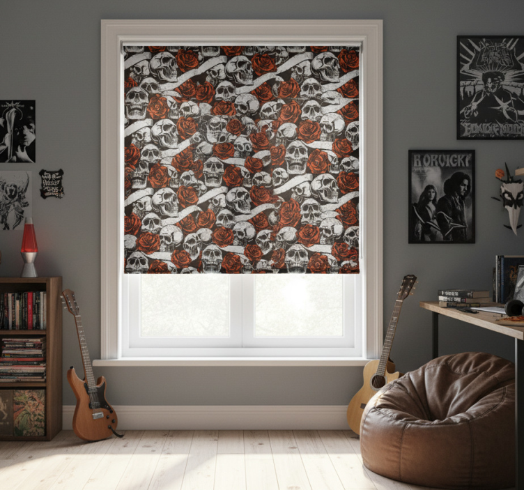 Rollo fenster jugendzimmer totenköpfe und rosen