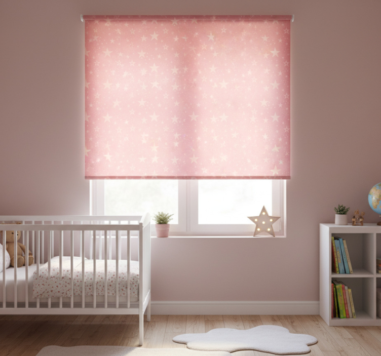 Rollo fenster kinderzimmer hellrosa sterne auf dunkelrosa