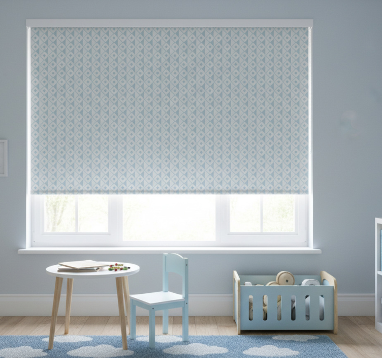 Rollo fenster kinderzimmer in blau-weißen rauten