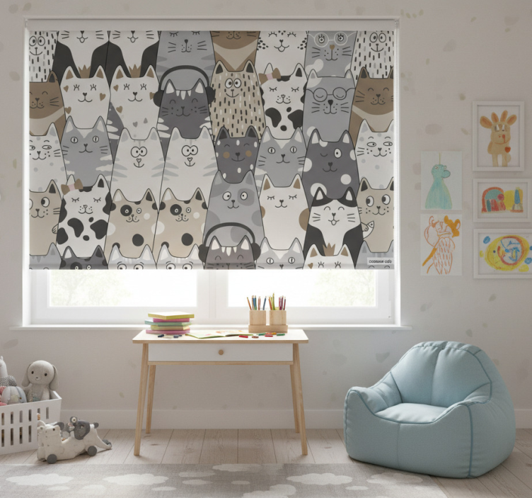 Referenz: E7223Entdecken Sie das bezaubernde Rollo Fenster Kinderzimmer mit Cartoon Katzen, das nicht nur funktional ist, sondern auch das Kinderzimmer mit seinen fröhlichen Katzenmotiven zum Leben erweckt. Dieses Rollo besticht durch ein einzigartiges Design, das die Wände Ihres Kinderzimmers in einen verspielten Ort verwandelt. Die niedlichen Cartoon Katzen sorgen für eine lebendige Atmosphäre und schaffen einen Raum, in dem sich Ihre Kinder wohlfühlen und entspannen können!
