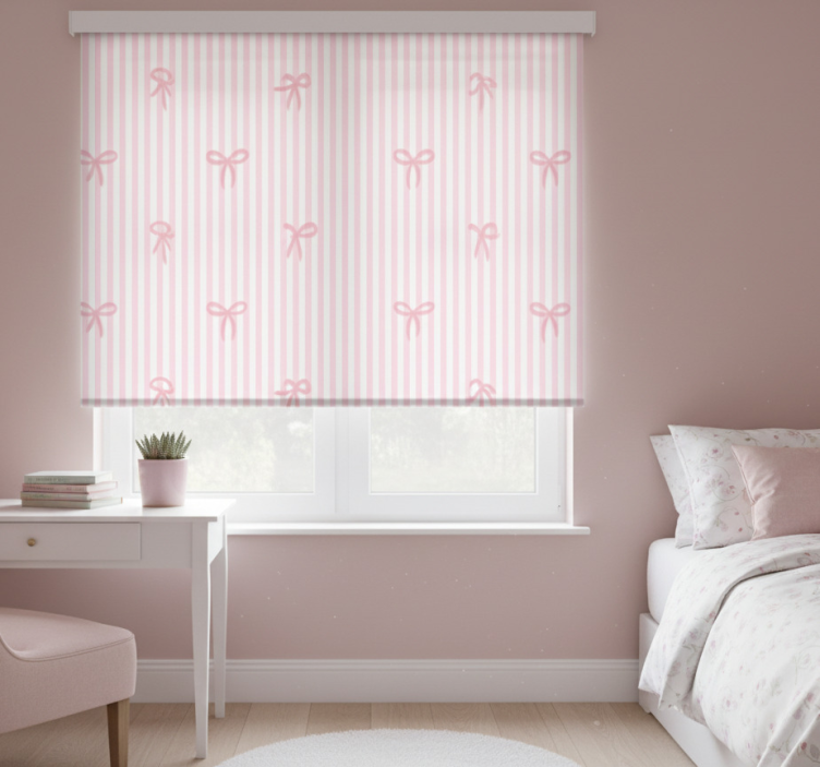 Rollo fenster rosa mit rosa streifen und schleifen