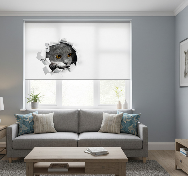 Rollo fenster weiß mit süßer katze