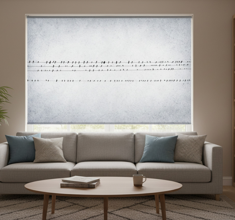 Rollo fenster weiß vogelkonzert auf linien
