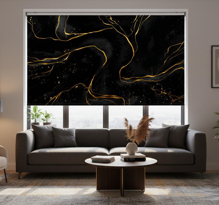 Ein Rollo Wohnzimmer aus schwarzem und goldenem Marmor ist die perfekte Wahl für alle, die Wert auf stilvolles Wohnen legen. Es schützt Ihren Raum vor direkter Sonneneinstrahlung und sorgt gleichzeitig für eine angenehme Atmosphäre. Mit diesem Rollo schaffen Sie nicht nur eine schicke Dekoration, sondern auch ein Gefühl der Sicherheit und Geborgenheit. Lassen Sie sich von der Qualität und dem Design inspirieren!