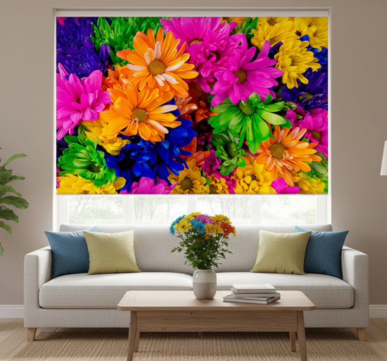 Referenz: E8944Entdecken Sie das bezaubernde Rollo Wohnzimmer bunten Chrysanthemen, das mit seinem lebhaften und farbenfrohen Design Ihre Wohnräume aufhellt. Die harmonisch angeordneten Chrysanthemen-Muster bringen eine fröhliche Stimmung in Ihr Zuhause und verleihen jedem Raum eine stilvolle Note. Dieses Rollo kombiniert nicht nur Ästhetik, sondern auch Funktionalität, denn es schützt vor direkter Sonneneinstrahlung und sorgt für die nötige Privatsphäre.