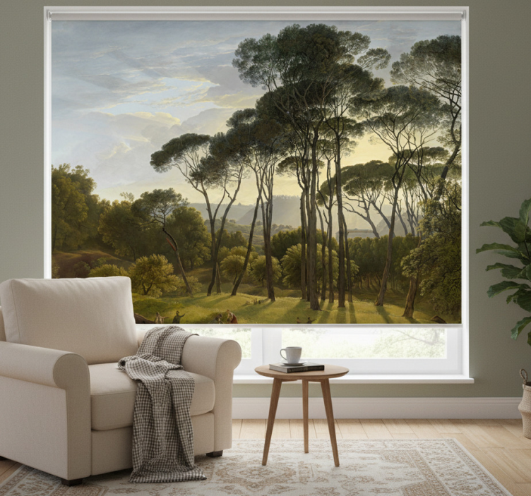 Das Rollo Wohnzimmer italienische Waldlandschaft ist mehr als nur ein dekoratives Element; es ist eine Einladung zur Entspannung und zur Wertschätzung der Natur. Dieses Rollo schafft eine harmonische Atmosphäre, die sowohl stilvoll als auch funktional ist. Es schützt Ihren Raum vor direkter Sonneneinstrahlung und sorgt gleichzeitig für Privatsphäre, wenn Sie es wünschen. Lassen Sie sich von der beruhigenden Waldlandschaft inspirieren und genießen Sie das Gefühl, in der Natur zu sein, während Sie bequem in Ihrem Wohnzimmer entspannen!