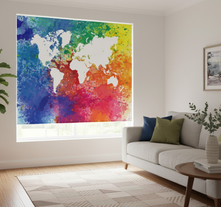 Rollo wohnzimmer künstlerische bunte weltkarte