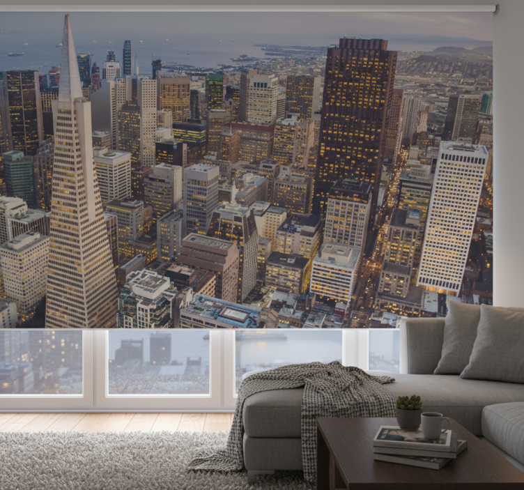 Referenz: E8974Entdecken Sie das Rollo Wohnzimmer mit Blick auf San Franciscos Wolkenkratzer, das nicht nur funktional, sondern auch ein echter Blickfang für Ihr Zuhause ist. Mit seinem modernen Design und den eleganten Texturen schafft es eine harmonische Atmosphäre, während es gleichzeitig als effektiver Sichtschutz dient. Das Rollo Wohnzimmer mit Blick auf San Franciscos Wolkenkratzer vereint Stil und praktischen Nutzen und wird schnell zum Highlight Ihres Wohnraums.
